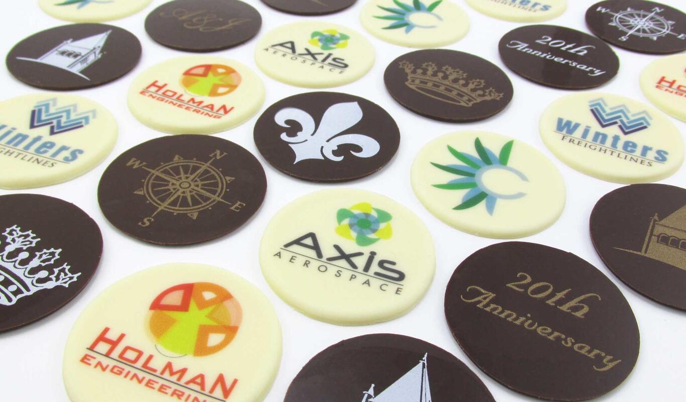 Plaquettes can be customized with a logo or an image in single color on dark chocolate.
